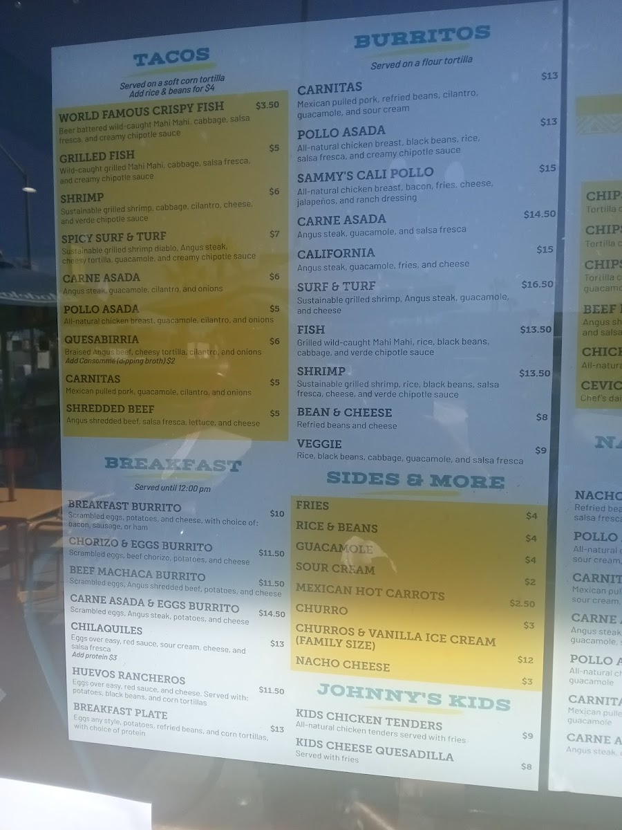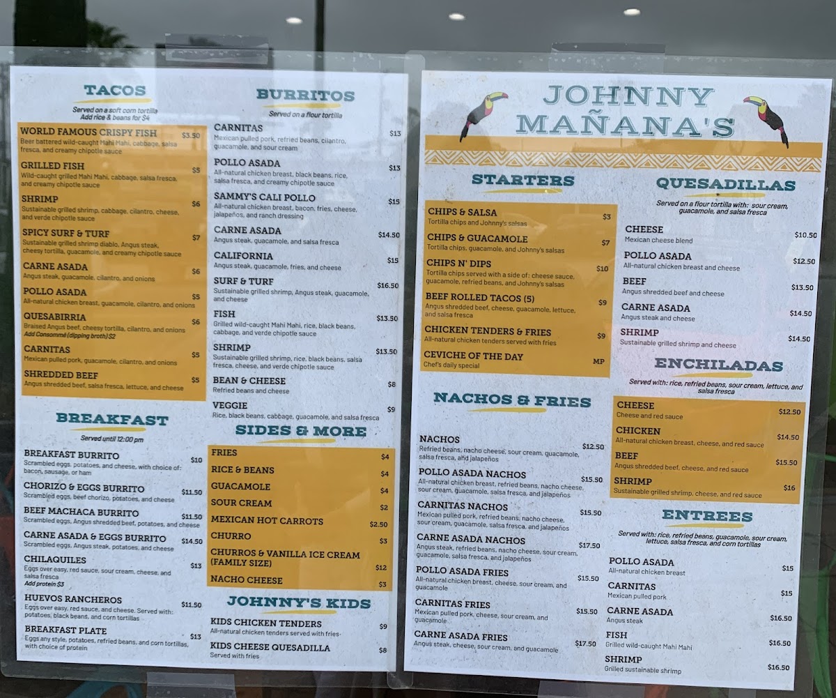 Johnny Mananas Ocean Beach Menu (Update 2025)